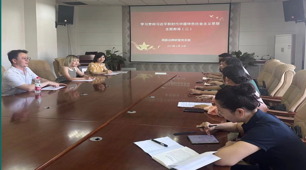 6月19日,伟德国际victor1946民族法教研室党支部开展主题教育,支部教师党员在图书馆四楼会议室进行集体学习,党外人士闫德华老师列席参加。全体党员就《习近平著作选读》(第一卷)、《习近平新时代中国特色社会主义思想专题摘编》、《高举中国特色社会主义伟大旗帜为全面建设社会主义现代化国家而奋斗》(党的二十大报告),以及《中国共产党章程》中的部分内容进行了学习。