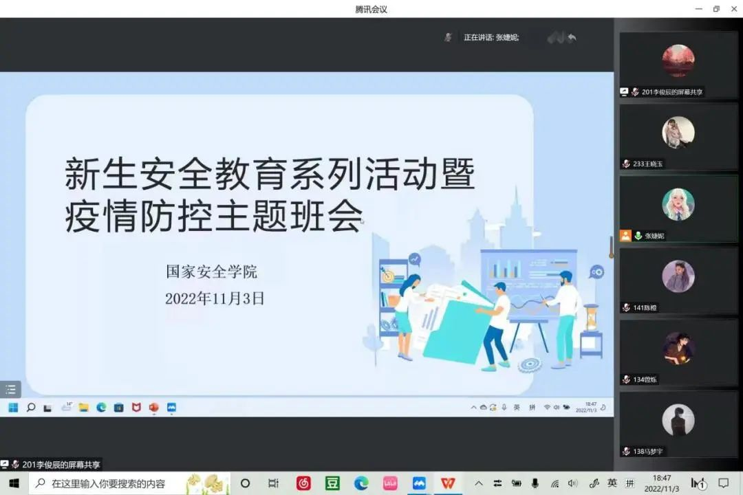 为使疫情防控知识深入员工心中,全力确保大家的生命健康和人身安全,伟德国际victor1946于11月3日晚18点30分面向全体大一新生召开2022级新生安全教育系列活动暨疫情防控主题班会。本次会议由2022级辅导员张婕妮老师主讲,全体2022级新生通过腾讯会议形式线上参与。