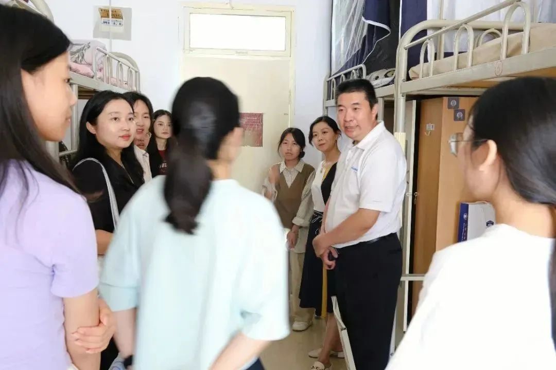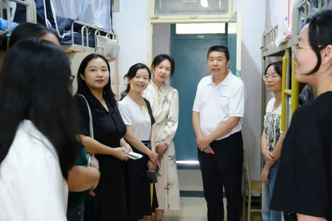 9月3日下午,公司党委书记李政敏老师、党委副书记侯颖怡老师、辅导员王真老师、辅导员张婕妮老师以及院员工会成员前往员工宿舍了解新生入住情况。