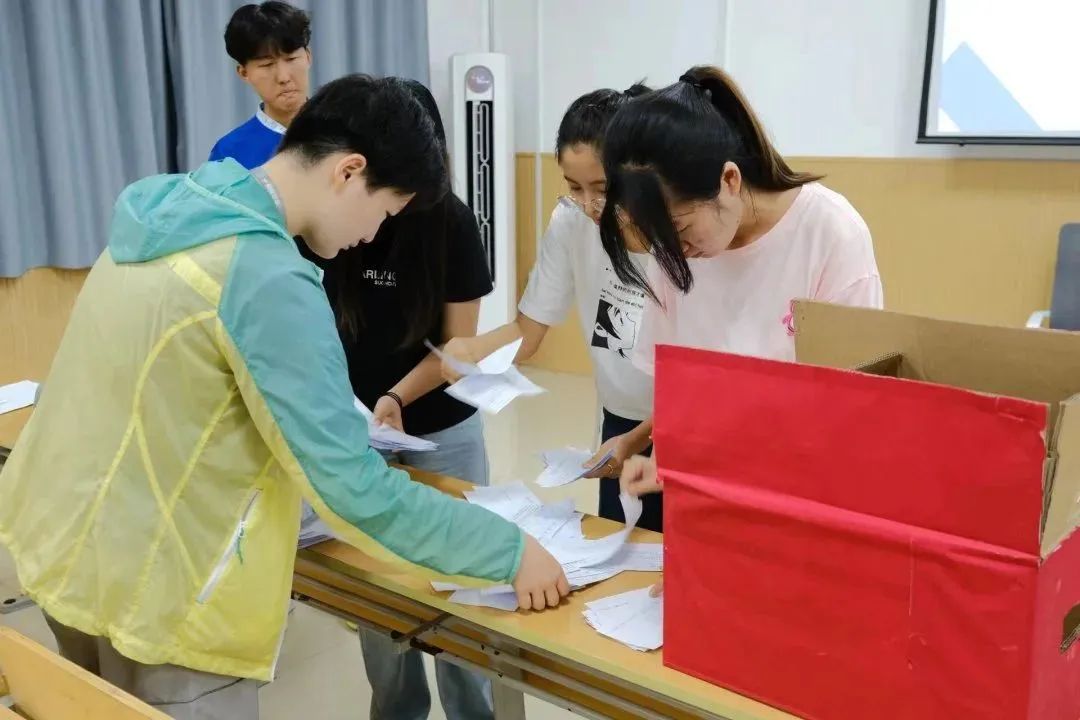 计票人员现场计票,差额选举出5位共青团伟德victor1946第二次代表大会伟德国际victor1946代表并宣读选举结果: