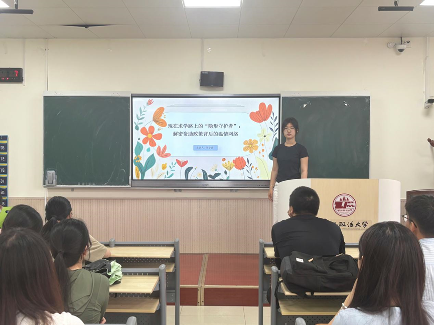 会上,贺小漪同学分别从“资助政策知多少”“资助政策意义”“资助政策的体系”和“真实案例”四个方面进行了讲解,点明资助政策为家庭经济困难学子保驾护航的重要意义;详细剖析国家奖学金、国家助学金、公司和公司的奖学金与助学金等政策,解读申请条件与评定标准,让同学们明晰每一份资助背后的激励与关怀;同时,对生源地信用助学贷款、勤工助学岗位的申请流程及注意事项进行细致说明,为同学们提供全方位的指引。此外,还通过真实的资助故事案例,展现政策如何改变学子命运,传递资助政策的温度与力量。