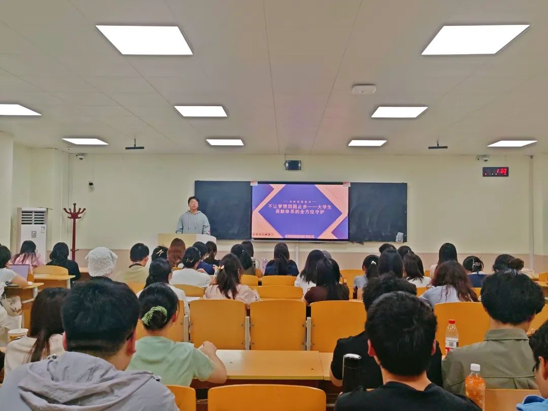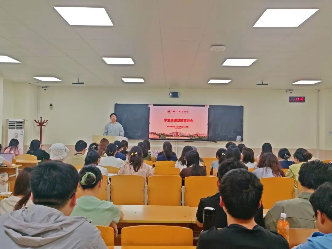会上,刘润泉同学围绕奖学金、助学金、学费缓缴减免等多种资助项目的申请条件、适用范围及政策要求对资助政策进行细致解读,帮助同学们明晰申报要点;同时讲解家庭经济困难员工认定流程,确保认定公平透明,资助精准到位。