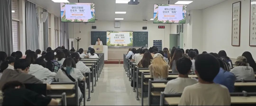 会上围绕外出游玩安全、饮食卫生安全、防溺水安全及消防安全四大板块,全面梳理了假期出行中可能存在的安全隐患及相应解决办法。通过分析近年来典型安全事故案例,引导同学们深刻认识风险预防的重要性,确保假期出行安全无虞。