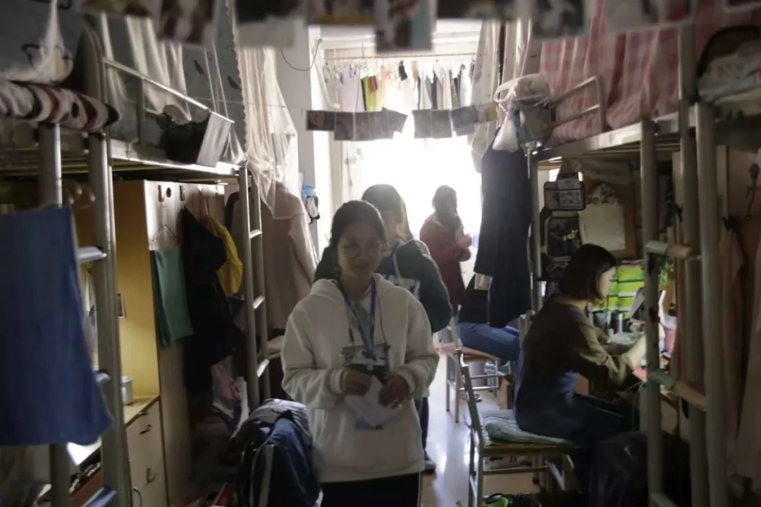 学业繁重的大三的学长学姐们也依旧将自己的宿舍收拾得井井有条。在中午进行宿舍评比活动时,恰巧有位大三的同学在弹吉他,指尖拨动的琴弦,奏出的是内心的平静与安宁。能够从繁冗的学业中抽出空来,通过自己的喜好来放松自己,值得我们共同学习。在大三的女生宿舍里,由细麻绳串起的一张张照片也令人印象深刻,它记录了同学们生活中的美好瞬间,能使我们感受到生活中的小幸运,因而常怀感恩之心,那一片片回忆也彰显出该宿舍温馨融洽的宿舍文化。
