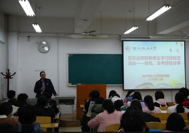 11月22日晚,反恐怖主义法公司在天平楼B409召开了推免生学习经验交分享会。会议由公司团委书记席捷老师主持,2015级4名推免生、2018级全体新生参加。