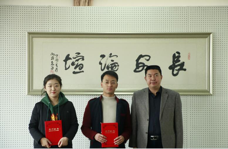 经过前期的精心准备和大赛组委会的公平公正评选,10份优秀作品脱颖而出,反恐法公司党委副书记刘妍良宣读表彰决定和获奖名单,并对获奖同学进行了赞扬和鼓励。宋白、李政敏、刘妍良、席捷分别为获奖同学颁发荣誉证书并合影留念。
