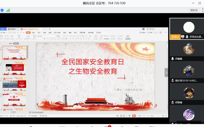 各团支部依托网络平台开展云宣讲活动,引导同学们观看视频,了解《国家安全法》基础知识、牢记维护国家安全是公民应尽的责任与义务,传达国际安全教育宣传日的重要意义。同时,班委带领同学们阅读《关于全面禁止非法野生动物交易、革除滥食野生动物陋习、切实保障人民群众生命健康安全的决定》,了解生物安全领域基本常识,并结合防疫形势在班群中展开热烈讨论,增强了同学们的生物安全意识与防范风险能力。