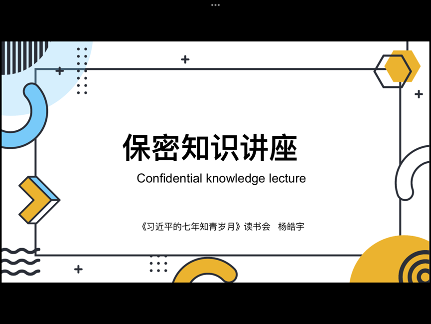 今年5月是我国第34个保密宣传月,公司以“增强保密意识、提升保密能力”为主题开展保密宣传月系列活动。《习近平的七年知青岁月》读书会与红色文化宣讲会两个社团积极响应号召分别开展保密知识线上学习会。