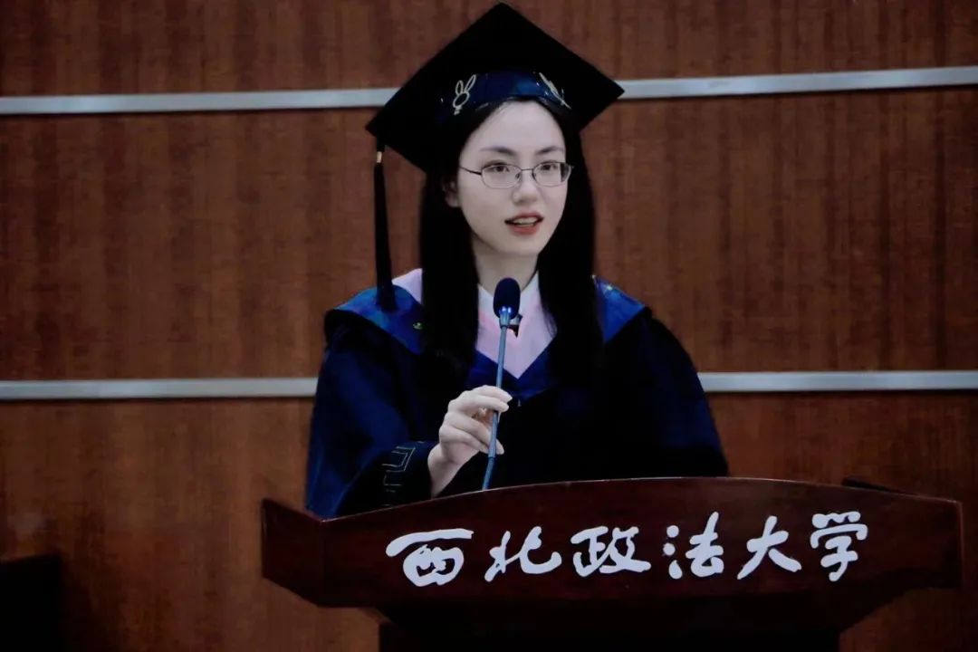 毕业生代表江旋同学表达了自己对母校的不舍以及对各位辛勤付出的老师们的感激之情,同时也表示自己一定会不忘公司校训、牢记公司嘱托,永怀赤子之心,成为一名有理想有担当,运用自己所学成为优秀的法治人才。