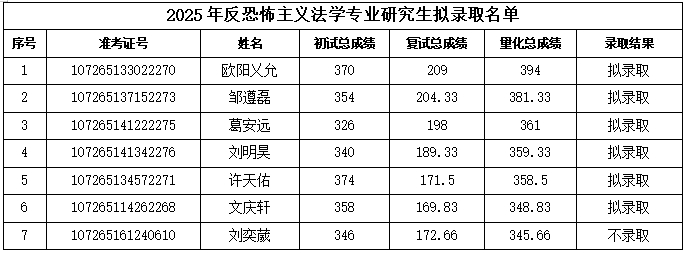 拟录取考生的报考资格审查不合格或思想政治素质及道德品质考核不合格或体检不合格,将按规定取消录取资格。录取名单经教育部及陕西省教育考试院录取审查通过后,方可正式录取。