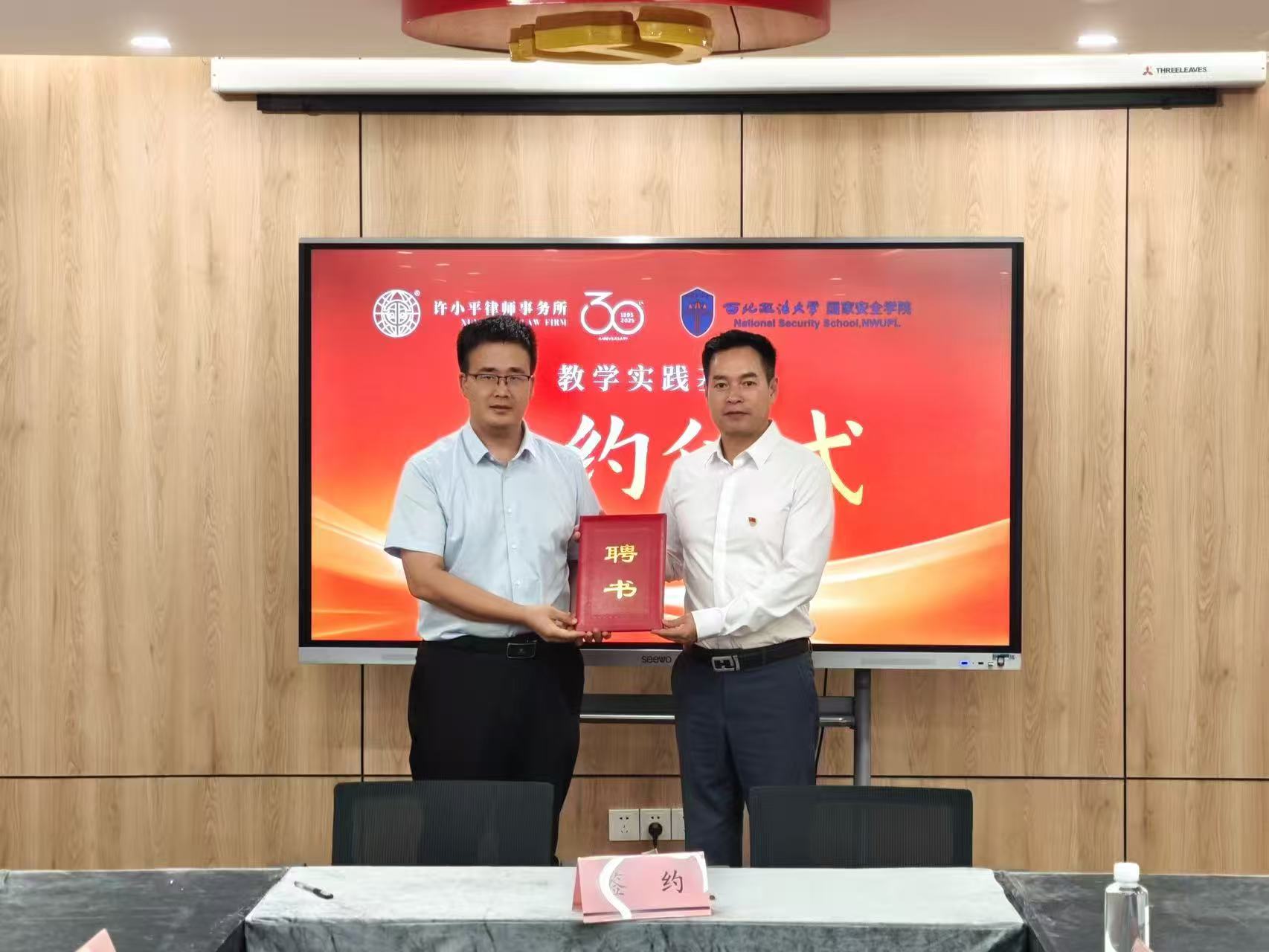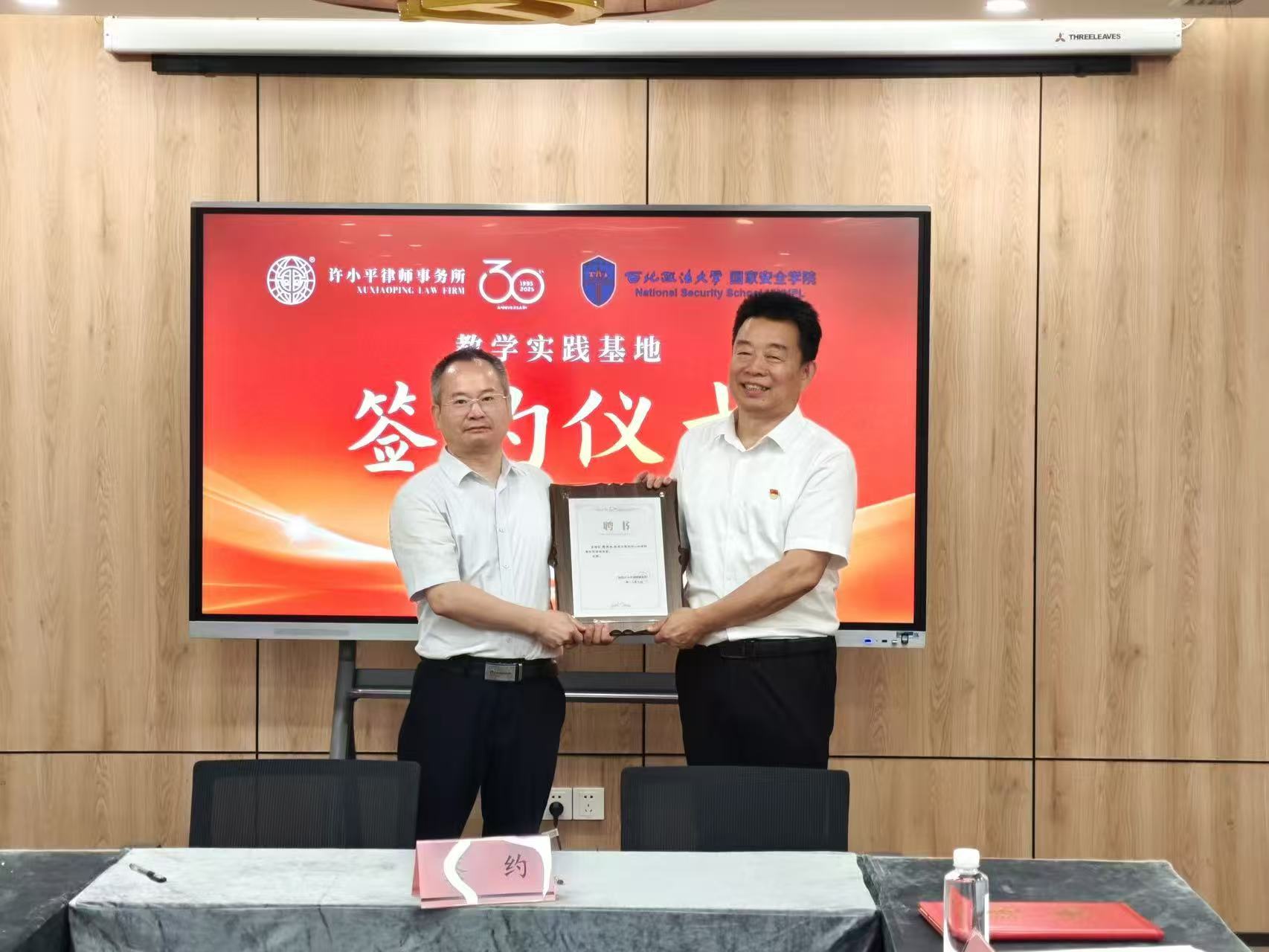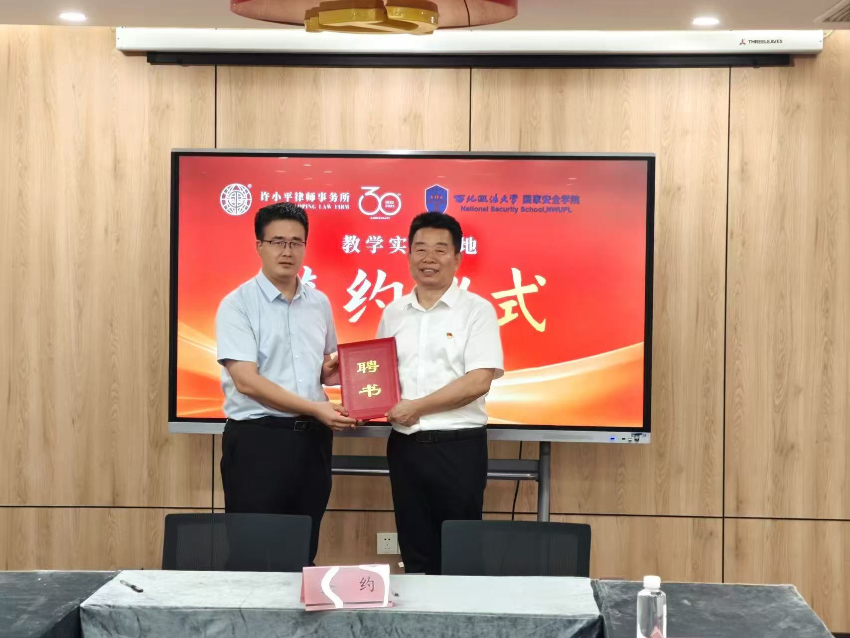 7月1日上午,伟德国际victor1946与陕西许小平律师事务所合作协议签约及实践基地授牌仪式在陕西许小平律师事务所举行。公司党委书记李政敏、经理舒洪水、党委副书记刘卫波,陕西许小平律师事务所主任路航、党支部副书记张举会及教师、律师代表参加会议。