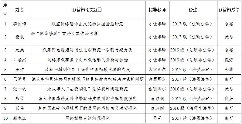 第二组答辩组长为古丽那尔(副教授),答辩委员有彭瑞花(副教授)、何杰锋(讲师)、才让卓玛(讲师)、马亮(讲师),答辩秘书为王卓(民族宗教研究院秘书长)、申苗苗(2017级民族法专业研究生)。本组答辩共有员工10人,其中包括2016级民族法专业员工3人、2016级法律硕士(非法学)专业员工2人、2017级法律硕士(法学)专业员工4人。