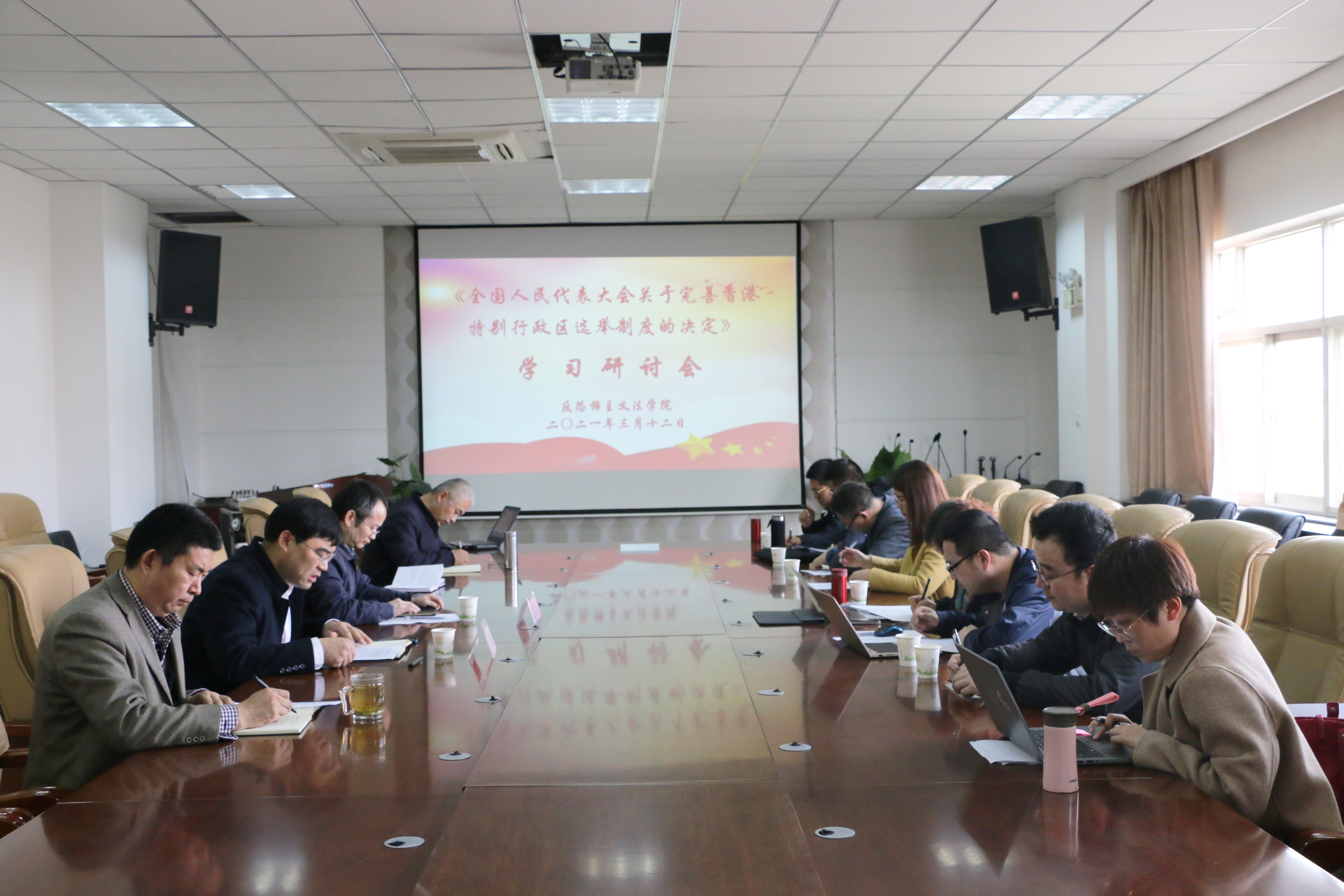 3月12日,反恐怖主义法公司在公司会议室召开学习《全国人民代表大会关于完善香港特别行政区选举制度的决定》座谈会。公司党政负责同志、教师代表、公司部分博士研究生、硕士研究生共30余人参加会议。会议由副经理王东明主持。