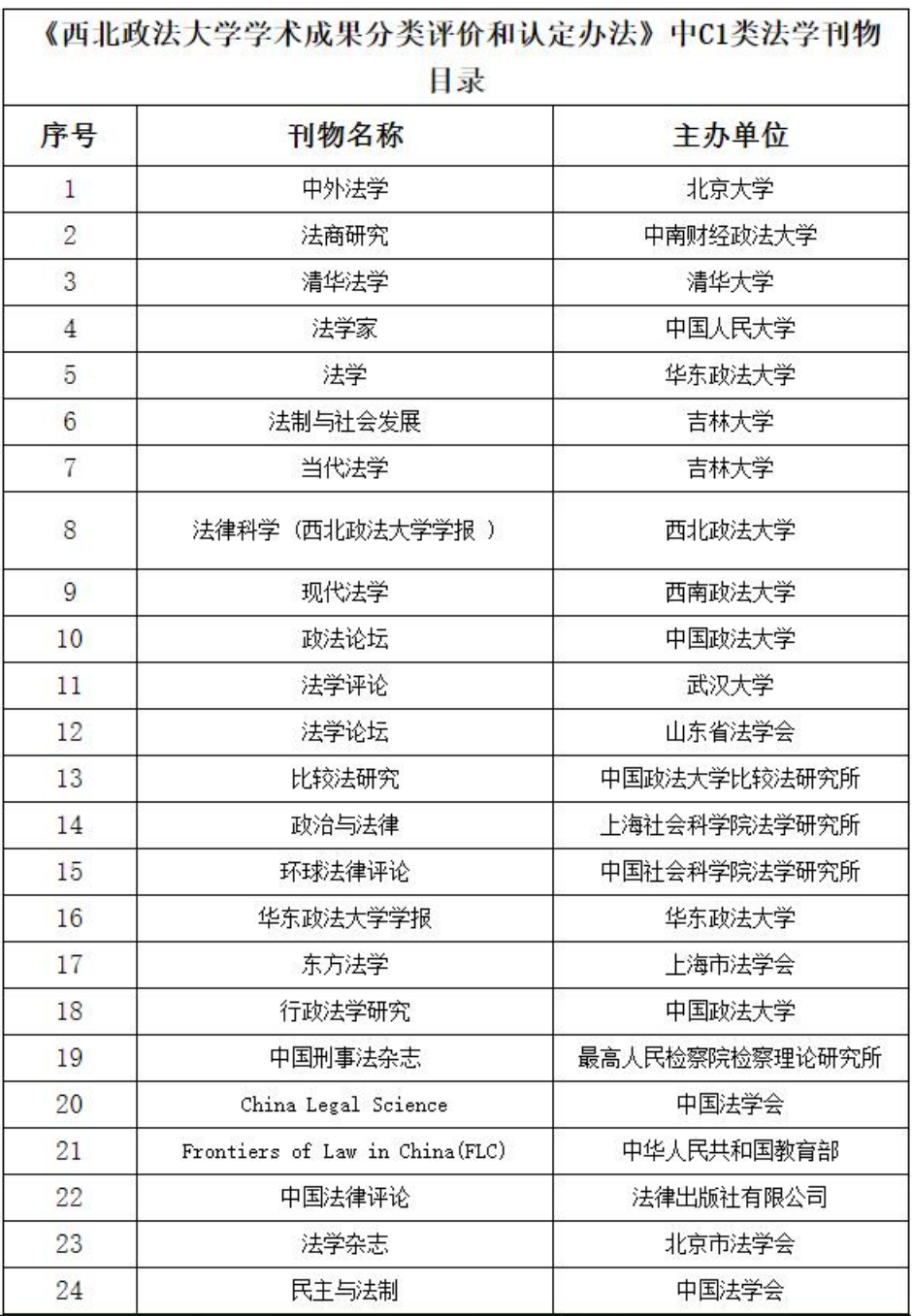 中国法学创新网于2024年6月17日更新了中国法学核心科研评价来源期刊(CLSCI)目录(2024年),共计27本。为促进公司法学学科发展,鼓励教师成果产出,经2024年9月5日学术委员会审议、2024年9月27日董事长办公会讨论决定,将中国法学核心科研评价来源期刊(CLSCI)目录中的《China Legal Science》、《Frontiers of Law in China》、《法学杂志》、《中国法律评论》、《民主与法制》5种刊物调整到《伟德victor1946学术成果分类评价和认定办法》的C1类法学刊物目录。目前,公司C1类法学刊物目录共24种刊物(见附表)。科研处在成果认定工作中,《民主与法制》从2024年第18期开始起算,其他4种刊物从2024年第1期开始起算。