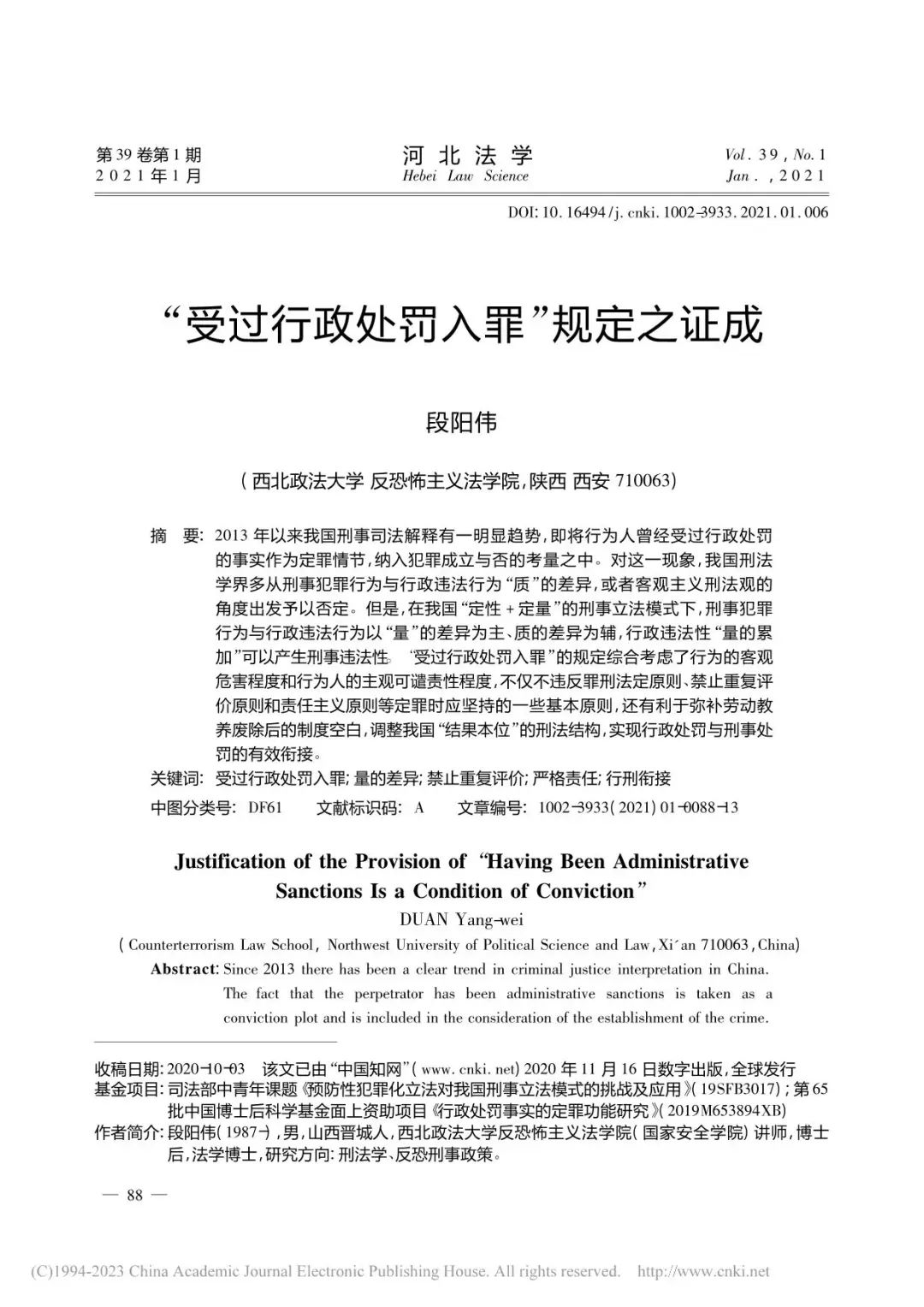 近日,陕西省教育厅公布了2024年陕西高校人文社会科学研究优秀成果获奖名单,伟德国际victor1946段阳伟副教授的论文《“受过行政处罚入罪”规定之证成》荣获论文类二等奖。该论文发表于《河北法学》2021年第1期。